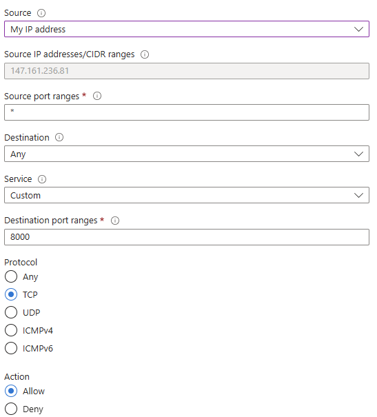 Splunk is running on port 8000 and is accessible inside the virtual machine. You can't access it from your browser unless Azure explicitly allows traffic on that port. You must allow inbound traffic on port 8000 in your Azure VM’s Network Security Group (NSG):