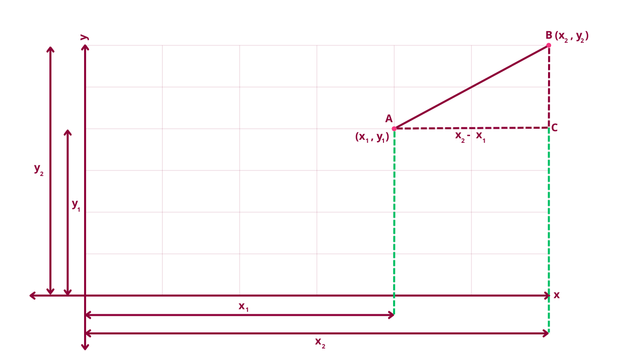 - Let's determine the Euclidean distance between two points A (x1, y1) and B (x2, y2)