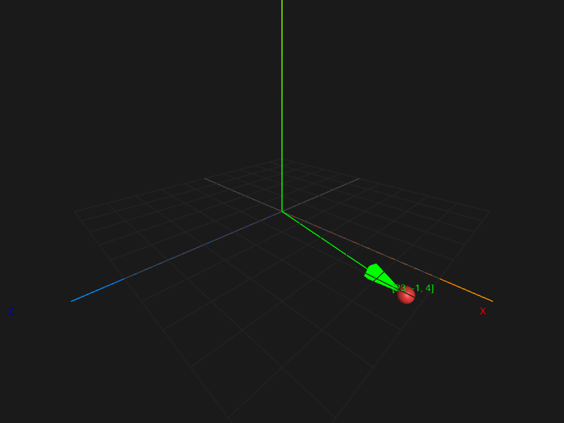 You can plot the dimensions of a vector on a graph. For example, here’s the vector (23, -1, 4) visualized as an arrow from the origin (0, 0, 0):