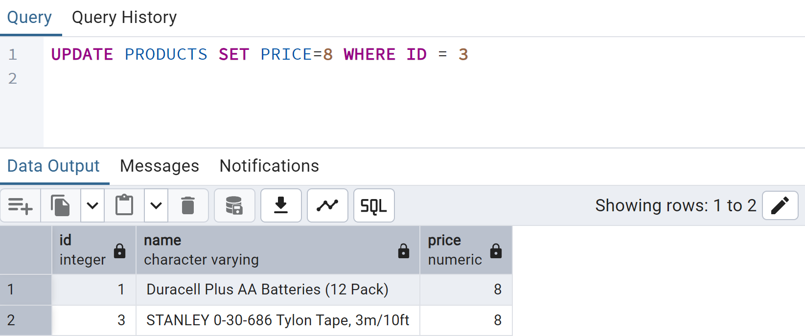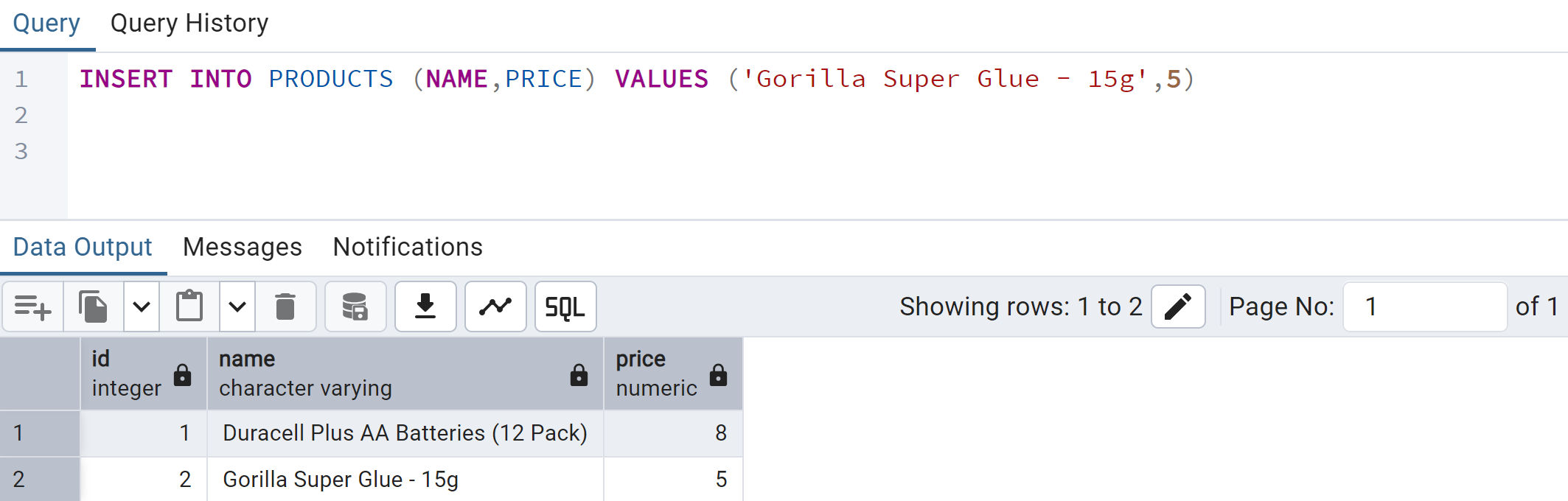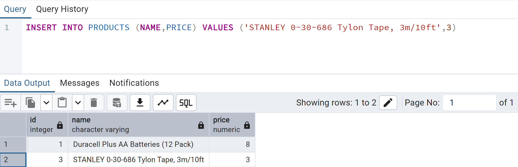 CREATE TABLE PRODUCTS (ID SERIAL, NAME VARCHAR, PRICE DECIMAL)Load the pageinspect extension into the current database. This extension allows you to inspect the contents of the database pages: