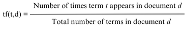 - How many times the same term appears in other documents (corpus) - Inverse Document Frequency