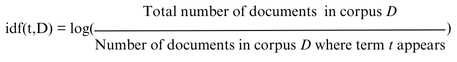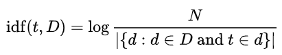 IDF is a measure of the number of times the same term appears in other documents (corpus). The formula for IDF is: